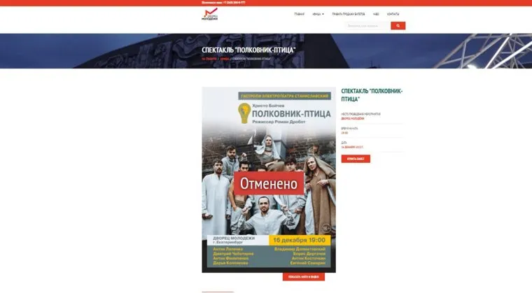 Во «Дворце молодежи» подтвердили информацию о том, что екатеринбуржцы не увидят спектакль «Полковник-птица» в этом году. Однако не стали уточнять, по какой причине гастроли отменили, и посоветовали обратиться к организаторам мероприятия. Корреспондент URA.RU попытался связаться с компанией «Театр +», которая занимается гастролями «Электротеатра Станиславский», однако единственный указанный номер в «СБИС» оказался недоступен. В самом театре, который планировал приехать в столицу Урала, трубку также не взяли.