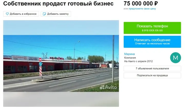 «Собственник продаст готовый бизнес в Орджоникидзевском районе: павильонный торговый комплекс (ТК „Молодежка“). Земельный участок в собственности — 46 сот, 80 павильонов, большая часть сдана в аренду», — указано в объявлении.
