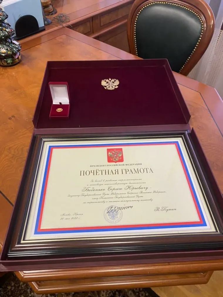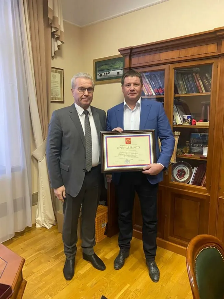 «Благодарен Владимиру Владимировичу за такую высокую оценку моего труда. Намерен и дальше продолжать работать на благо нашей страны», — поделился Бидонько. Почетную грамоту ему вручил полномочный представитель президента в Госдуме Гарри Минх.