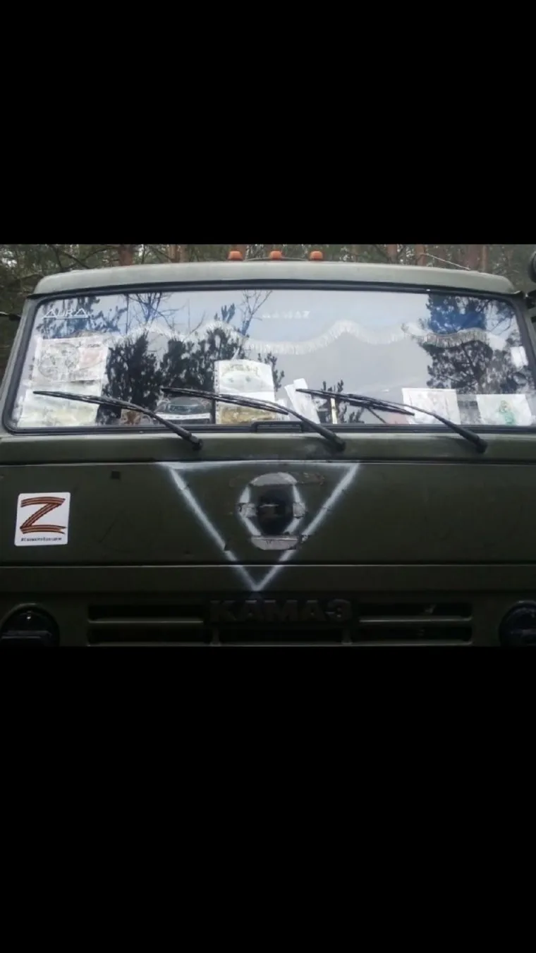 «Наши воины очень рады письмам и рисункам. На фото — „привет“ из-за ленточки от нашего курганского защитника! Стекло автомобиля увешано детскими рисунками. Бойцы уверены, что они „работают“ для них как оберег и сохраняют жизни! Пусть сохраняют, ребята, а мы еще напишем и нарисуем с детками!» — написала волонтер под фотографией с КамАЗом одного из бойцов.
