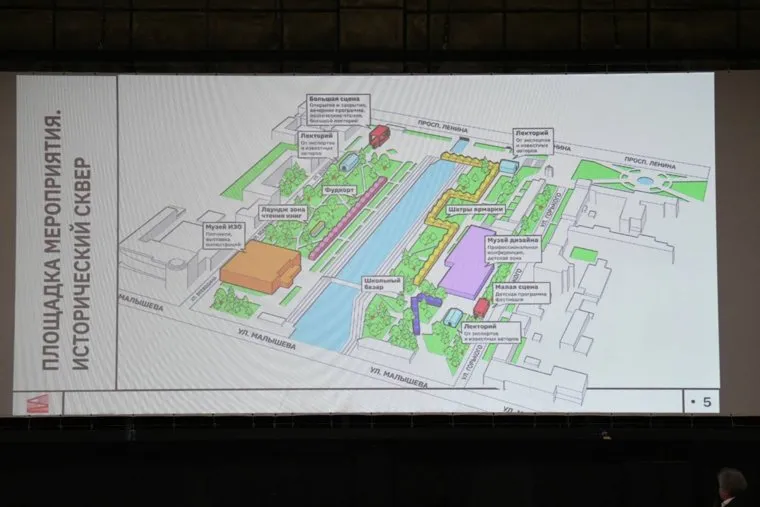 «Хотим представить новый проект продюсерского центра „Лад“ — новый международный книжный фестиваль „Красная строка“. <…> Основная его задача — это туристическая привлекательность Екатеринбурга. Если вы его одобрите, то не стесняйтесь свои предложения вносить письменно, мы все потом проанализируем и исполним», — попросил участников заседания Горенбург.