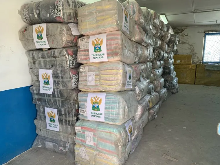 Таможенники Тюмени передали курганской соцслужбе тонны одежды, задержанной на границе с Казахстаном. Фото