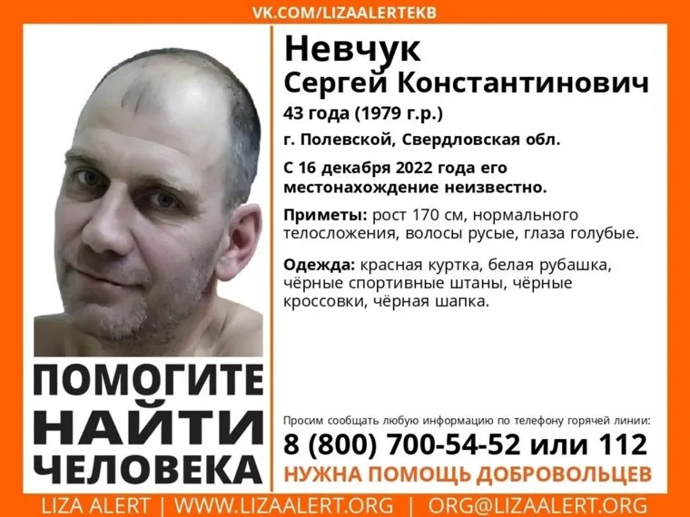 В Полевском (Свердловская область) полиция и волонтеры ищут пропавшего 43-летнего Сергея Невчука. Об этом сообщили поисковики «ЛизаАлерт» на официальном сайте.