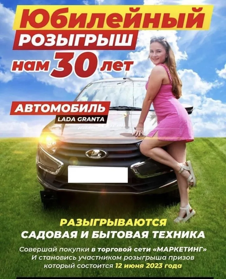 Депутат пермского законодательного собрания, учредитель компании «Маркетинг» Алексей Петров решил разыграть автомобиль «Лада Гранта». На своей странице в соцсети «ВКонтакте» Петров написал, что розыгрыш посвящен юбилею основанной им компании и состоится в День России, 12 июня.