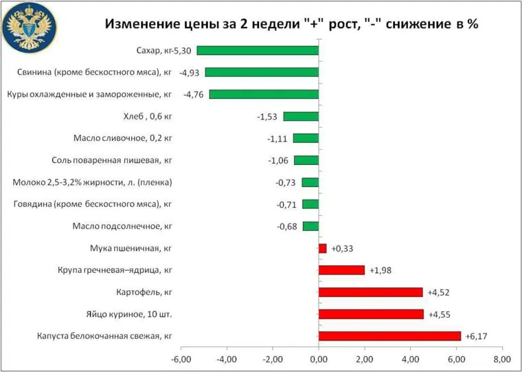 Там отметили, что несмотря на повышение цен ряда позиций, большинство показали снижение. Так килограмм сахара стал дешевле более, чем на три рубля, кило свинины подешевел на 13 рублей, и охлажденная курица на семь рублей.