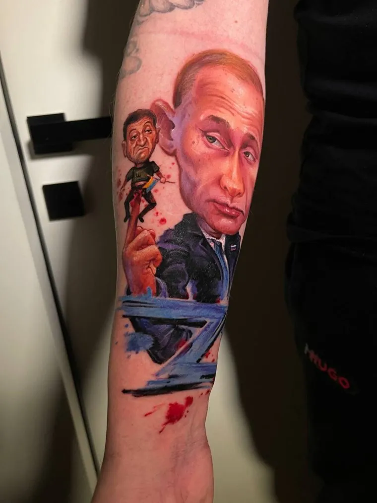 «Это вызов и сопричастность с нашими солдатами к спецоперации. Было ощущение, что поддержки наших солдат недостаточно, мы решили поступить так. Что касается татуировки с Путиным, это вызов большего масштаба, чтобы им [ВСУ] „пятую точку“ разорвало», — поделился с URA.RU тату-мастер.