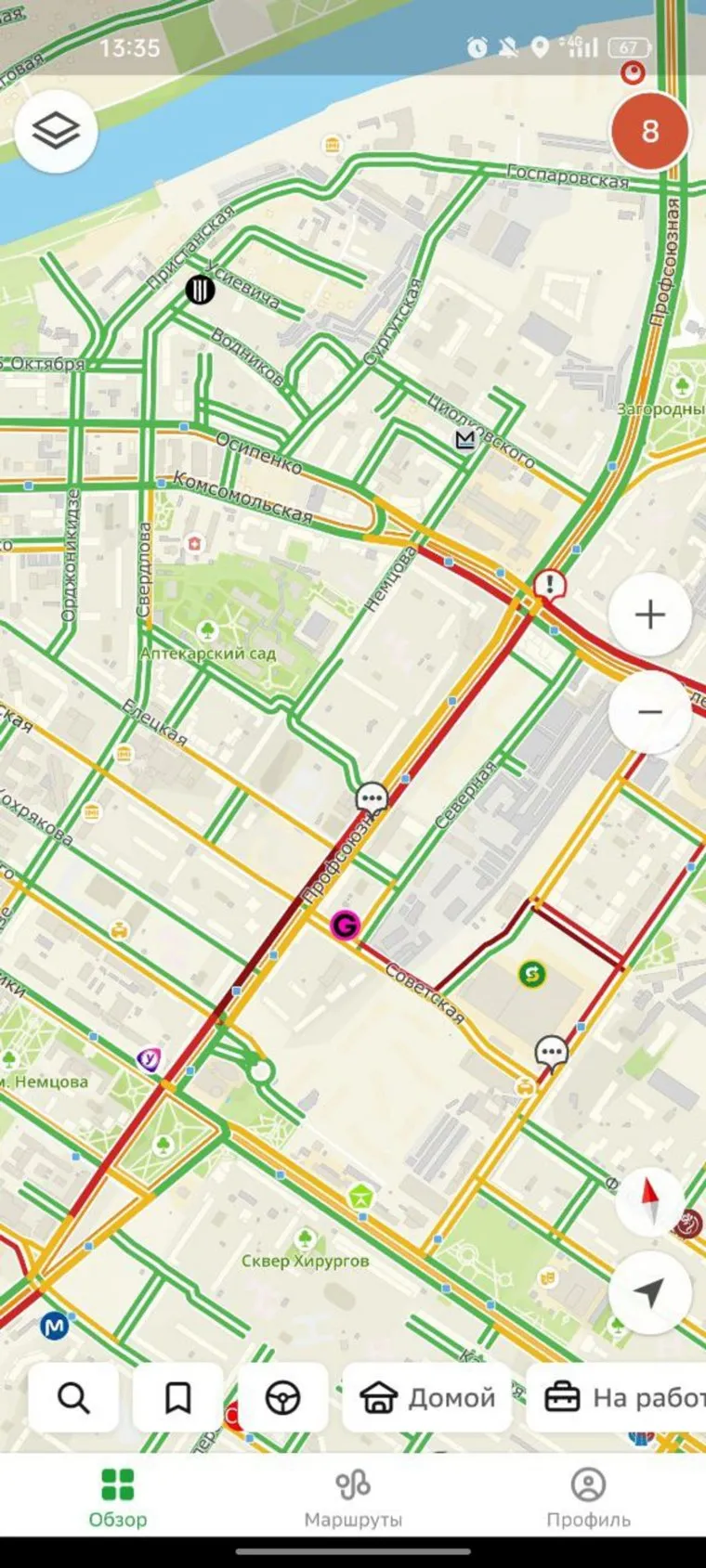 Сервис 2ГИС передает о пробках в 8 баллов