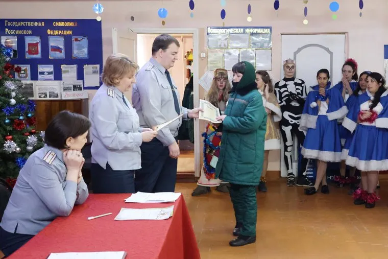 «С наступающим Новым годом! Знаменательное событие, что через два дня на год срок уменьшится. Всем желаю скорейшего освобождения, успехов, крепкого здоровья вам и вашим родным, всего самого наилучшего», — выступил с речью начальник колонии Роман Вебер. Также сотрудники колонии пожелали женщинам в будущем найти себя в профессии и в жизни, а также попросили исключить случаи повторных нарушений.
