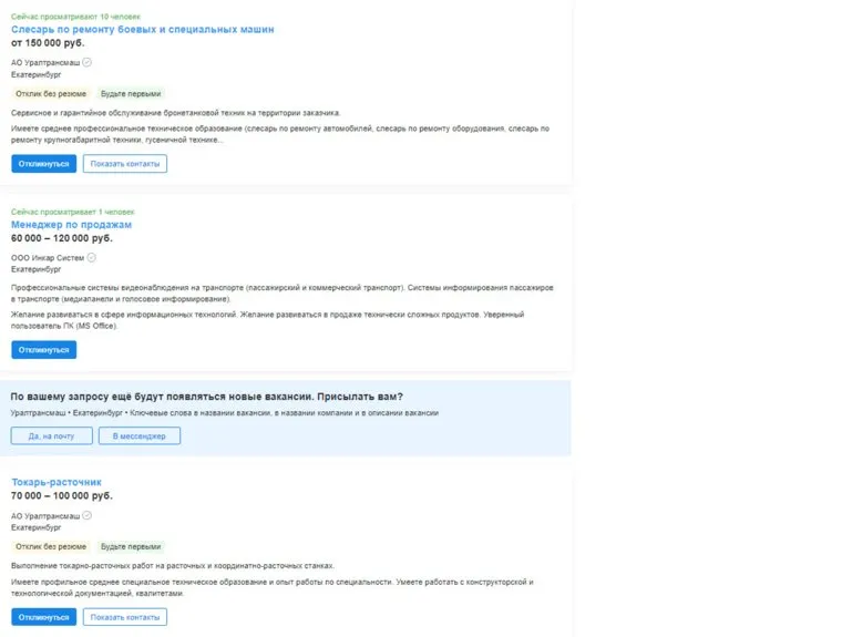 Среди специалистов, которые требуются на предприятие, значатся слесарь по ремонту боевых и специальных машин с зарплатой от 150 тысяч рублей, менеджер по продажам (60 — 120 тысяч рублей), токарь-расточник (70 — 100 тысяч рублей), слесарь-инструментальщик (от 65 тысяч), фрезеровщик (от 70 тысяч), стропальщик (от 40 тысяч), а также специалисты для документальной работы (экономисты, бухгалтера).