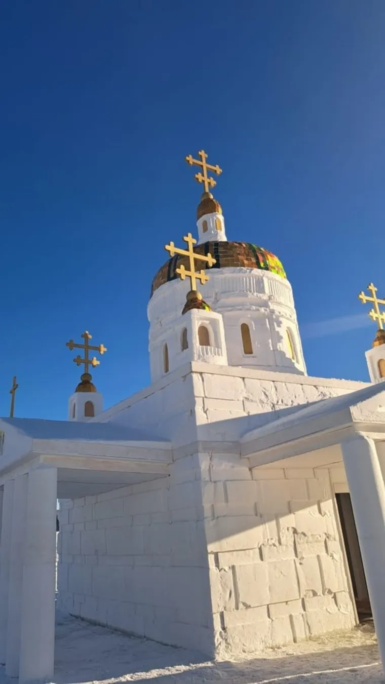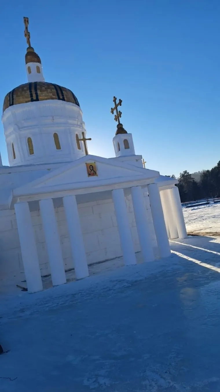 На базе отдыха «Форелька», которая расположена на озере Тургояк Челябинской области, построена купель в виде храма из снега. Фотографиями строения и часами работы купели поделились в соцсети.