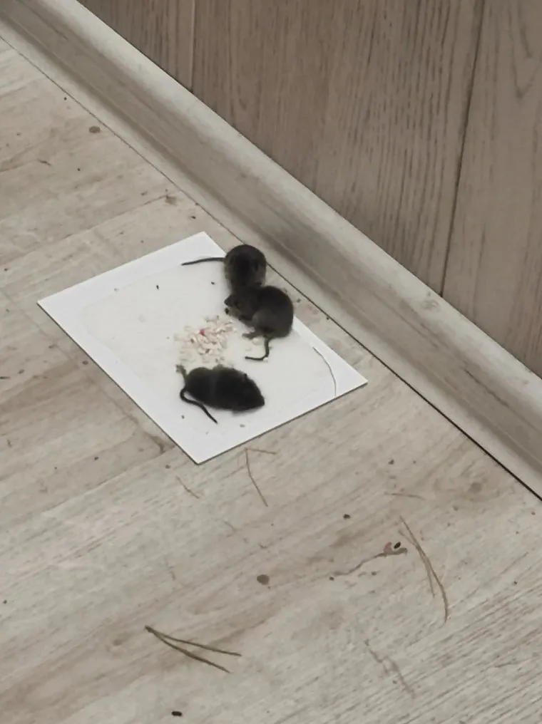 Одна из ловушек поймала сразу трех мышей