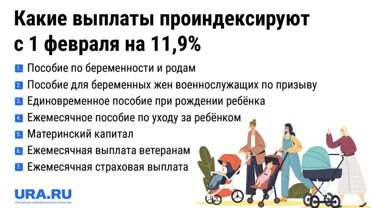 Пособия для семей с детьми, а также пенсии для ветеранов будут увеличены на 11,9%. URA.RU рассказывает о выплатах, которые увеличатся с 1 февраля 2023 года.