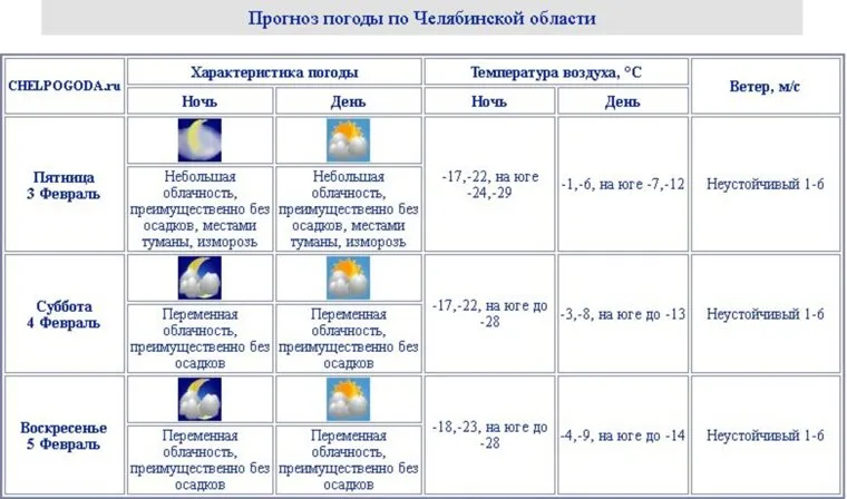 «В ночь на 3 февраля в Челябинской области ожидается небольшая облачность, преимущественно без осадков. Местами туманы, изморозь. На юге температура опустится до минус 28-29 градусов. Столь же морозными — до минус 28 градусов — обещают быть ночи на 4 и 5 февраля», — пояснили URA.RU в областном ЦГМС.