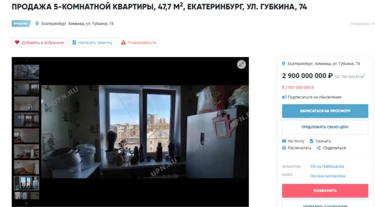 В Екатеринбурге в районе Химмаш на продажу выставили квартиру за 2,9 млрд рублей. Данное объявление появилось на сайте «Уральской палаты недвижимости».