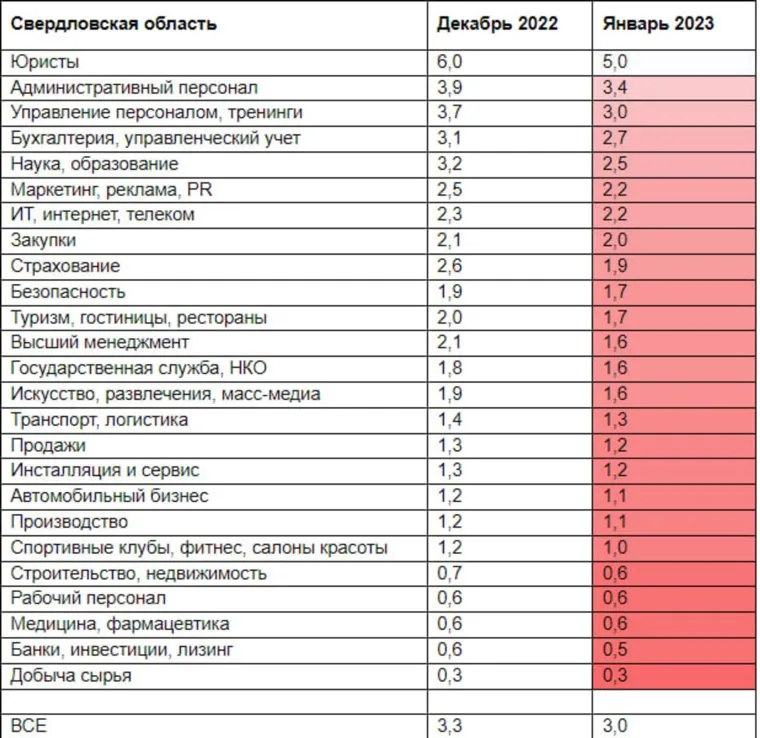 «По данным за январь 2023 года, на одну вакансию в регионе приходится всего три активных резюме, что на 0,3 пункта меньше, чем в декабре 2022 года. Нормой считается уровень конкуренции в 5−6 пунктов: в этом случае у работодателей есть адекватный выбор между кандидатами, а соискатели не чувствуют острой борьбы за рабочие места, но при этом стараются быть конкурентоспособными», — рассказали в компании.