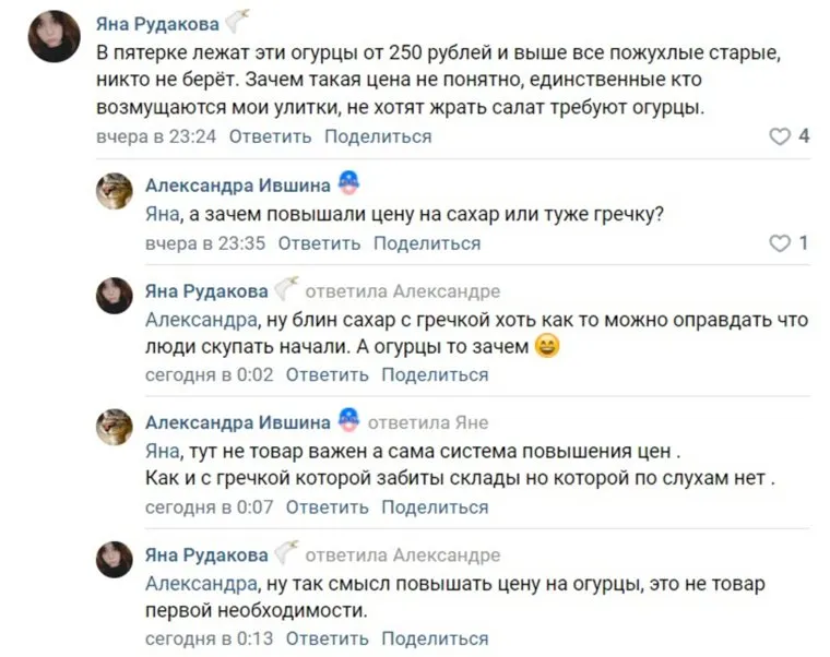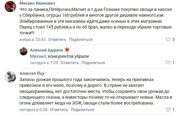 «Представляю, какой сейчас бум в магазинах типа „Садовод“. Все массово закупаются семенами огурцов. Ведь еще чуть-чуть и цена перескочит психологический уровень», — написал анонимный автор.