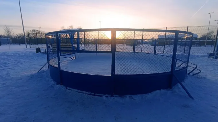 «Гуляли сегодня по парку на стадионе „Локомотив“ и наткнулись на такую махину. Подскажите что это и для чего?», — написал пользователь соцсети в паблике «Инцидент Курган», прикрепив фото объекта. Антон Федоров предположил в комментариях, что это площадка для смешанных единоборств — ММА. «Это корт, чтобы в хоккей играть, но какой-то другой немного», — написал Константин Бахарев. Пользователь Михаил Вальков прокомментировал, что подобная конструкция подойдет «для непослушных детей».
