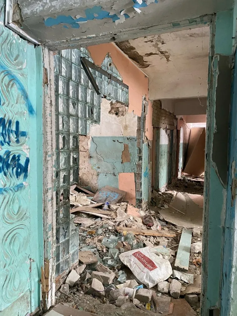 Стоящее рядом с бывшим ГПТУ-28 здание, в котором находились мастерские и общежитие училища, тоже начало разрушаться