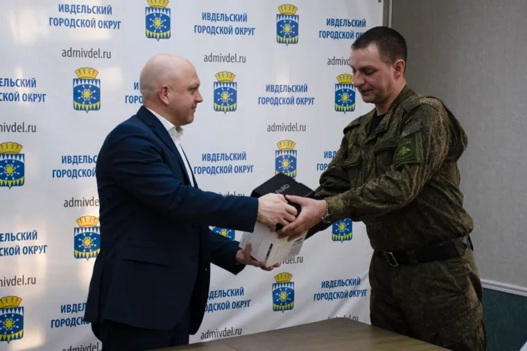 Глава Ивдельского ГО Владимир Михель передал солдату тепловизор и квадрокоптер