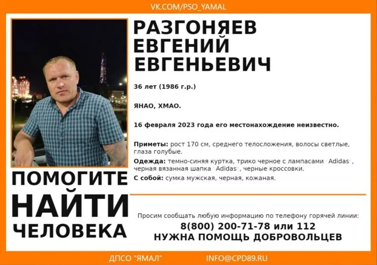 «Внимание! Помогите найти человека! Разгоняев Евгений Евгеньевич, 36 лет. С 16 февраля 2023 года его местонахождение неизвестно», — говорится в сообщении отряда в соцсети «ВКонтакте».