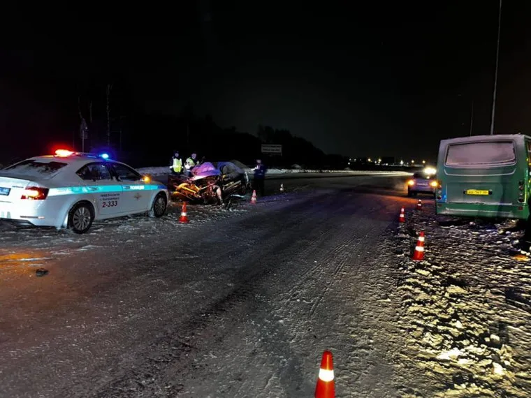 Авария произошла по вине 29-летнего водителя Mitsubishi, который, по словам сотрудников Госавтоинспекции, не справился с управлением и выехал на встречную полосу, где столкнулся с автобусом. Общественным транспортом управлял 64-летний мужчина.