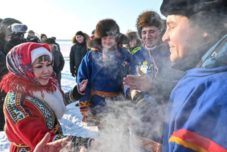 Губернатор ЯНАО Дмитрий Артюхов во время празднования Дня оленевода в Надыме поучаствовал в соревнованиях, среди которых были сбор чума и метание тынзяна на хорей (набрасывание лассо на деревянный шест — прим. URA.RU). Об этом сообщается в неофициальном telegram-канале властей региона «Пул 89».