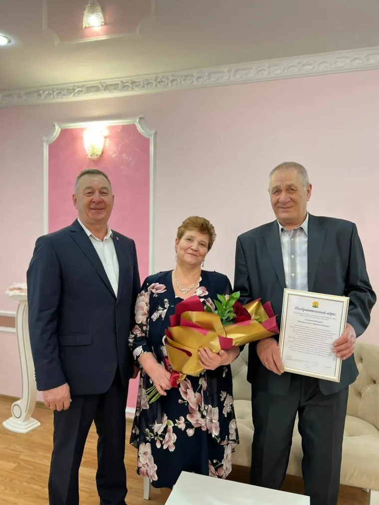 «50 лет назад загорелся огонь домашнего очага семьи Поезжаевых Ивана Васильевича и Татьяны Ивановны, проживающих в поселке Октябрьский. 5 марта в отделе ЗАГС супруги отпраздновали свой золотой юбилей. С теплыми словами поздравления к ним обратился глава округа Георгий Васильевич Поезжаев, пожелав юбилярам здоровья, долголетия и счастливой жизни в окружении детей, внуков, правнуков и родных людей, — указала пресс-служба Октябрьского округа.