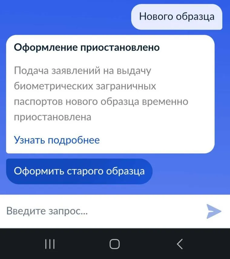НА «Госуслуги» сообщается о приостановлении выдачи заграничного паспорта