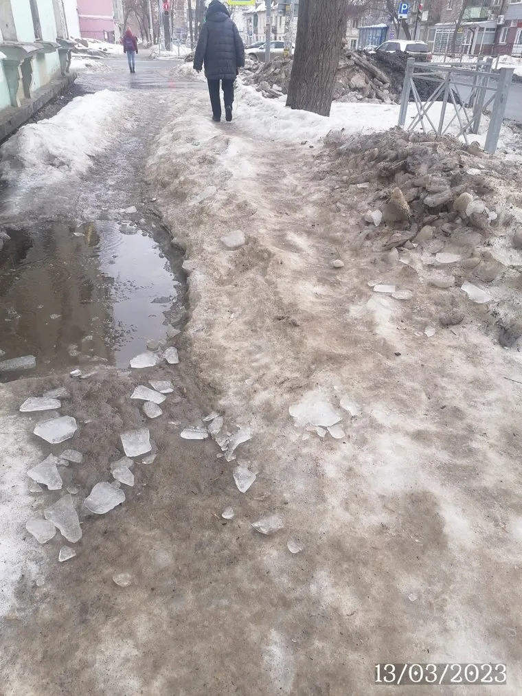Другой пользователь, Елена Германова, обращает внимание на необходимость контроля работы управляющих компаний: «Тургенева 10. Как тут ходить? Вы на УК вообще не можете повлиять чтобы она свой срач убрала после того, как с крыши скинула снег. Вместо того чтобы по КВН ездить — городом бы занялись». Свои посты жители сопроводили фотографиями неубранных дорог и тротуаров.
