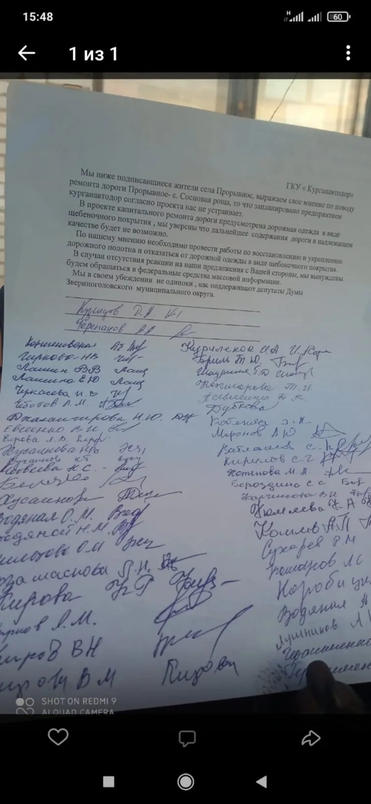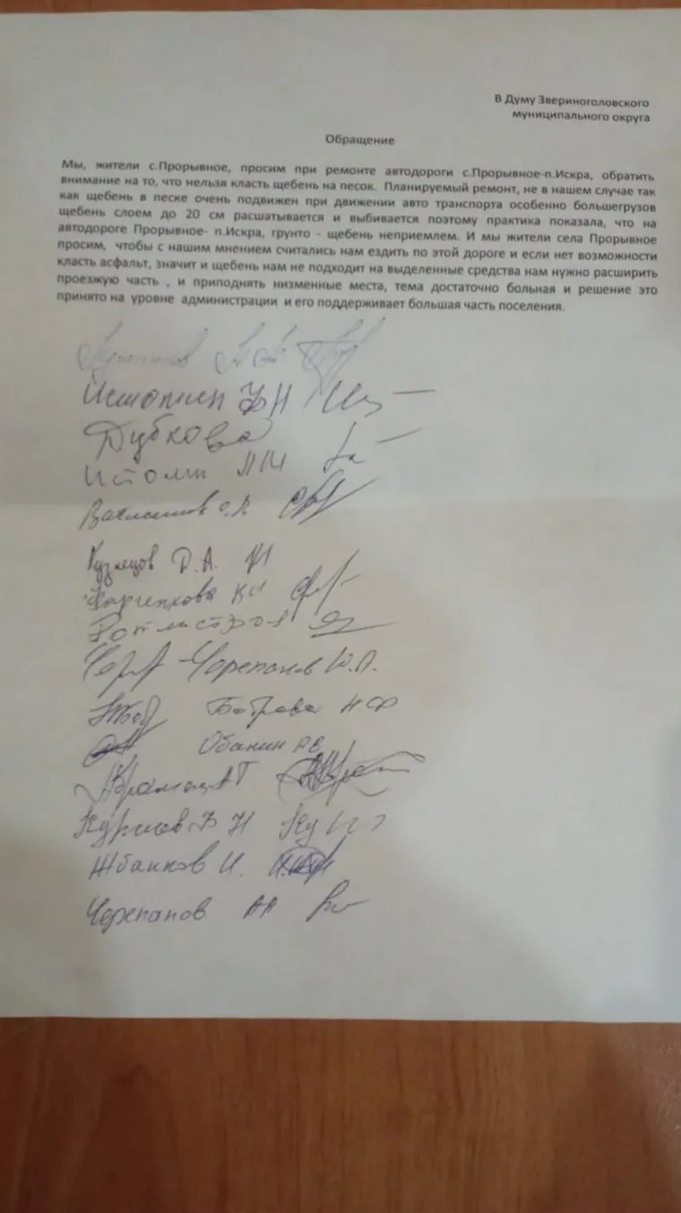 Обращение в Звериноголовскую думу подписали больше десятка жителей села Прорывное