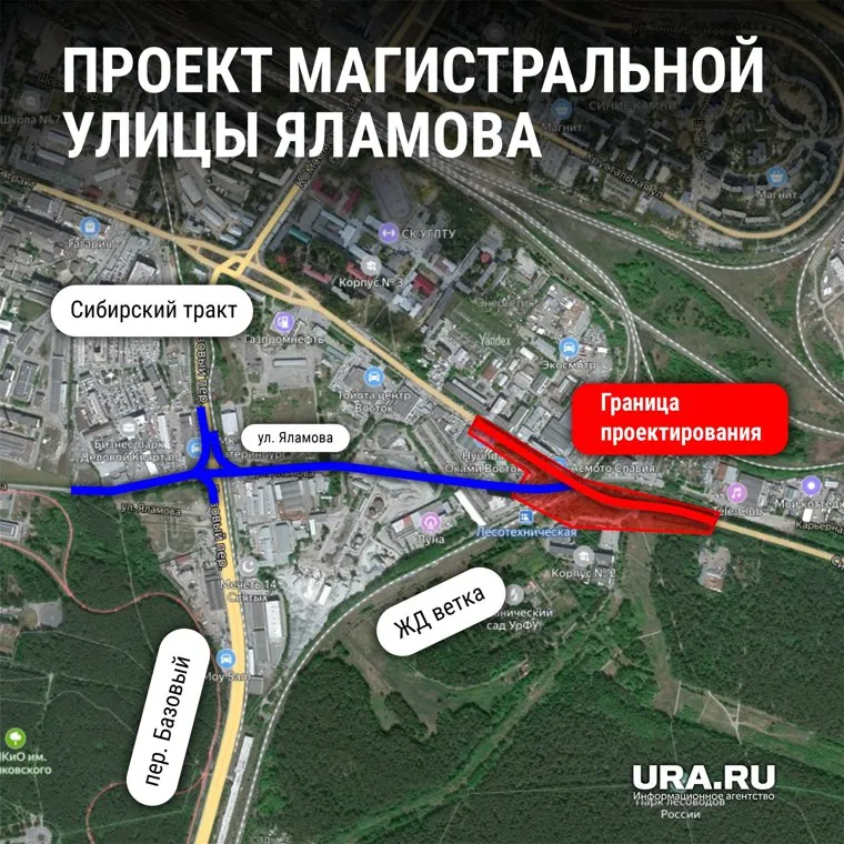 О продолжении улицы Яламова впервые заговорили в 2021 году. Тогда мэрия Екатеринбурга опубликовала проект, согласно которому новая улица пройдет над железнодорожной веткой вблизи Уральского государственного лесотехнического университета (УГЛТУ).