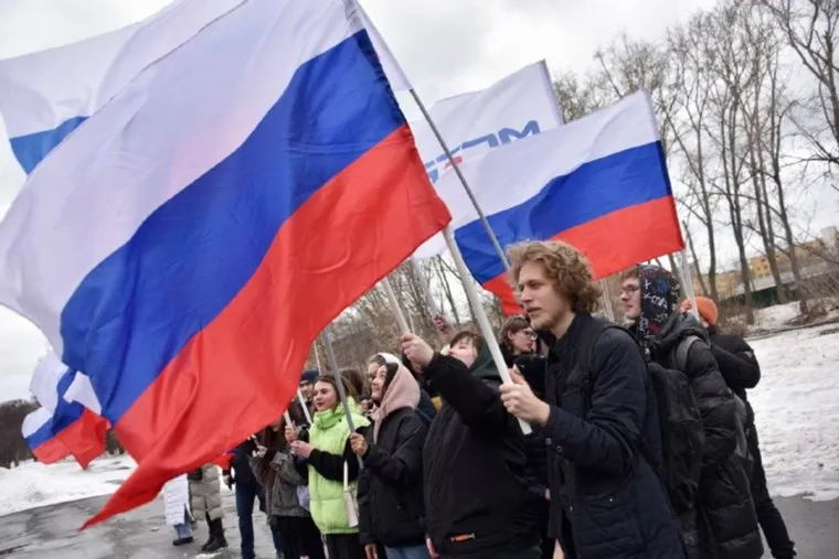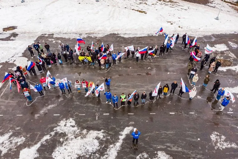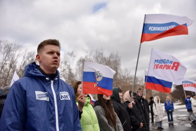 «Сегодня студенты и активисты отметили девятую годовщину воссоединения Крыма с Россией зрелищным митингом. Они выстроились в форме карты РФ, включающей ЛДНР, Херсонскую и Запорожскую области и исполнили российский гимн», — говорится в сообщении. От свердловского отделения «Молодой гвардии Единой России» в митинге участвовало 100 человек.