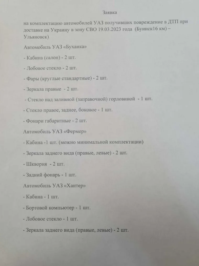 Пермяков просят помочь восстановить УАЗы, которые не доехали до зоны СВО из-за ДТП