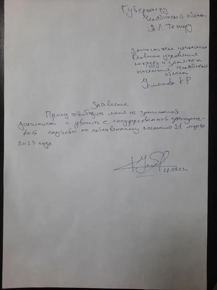 Заместитель начальника главного управления по труду и занятости Челябинской области Кирилл Усманов написал заявление об увольнении. Об этом Усманов 27 марта сообщил в социальных сетях.