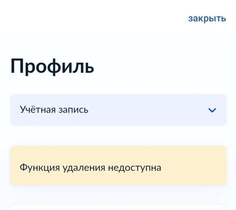«Госуслуги» убрали кнопку удаления профиля. Скрин