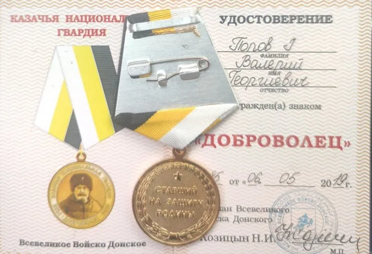 «Сегодня в Севастополе вручили медаль добровольца сыну генерала Попова. Он продолжает казачью деятельность своего отца и сейчас находится в служебной поездке в Крыму. Награда курганскому атаману была присвоена еще в 2019 году, но не было возможности ее вручить», — пояснили казаки.