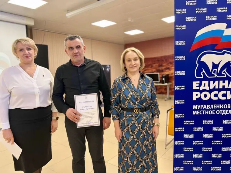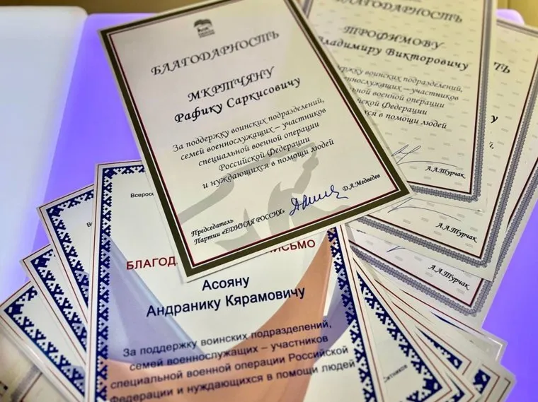 «Награждение предпринимателей, оказывающих поддержку воинским подразделениям, семьям военнослужащих и нуждающимся. На заседании Местного Политического совета 19-ти муравленковцам с большой гордостью вручила благодарственные письма, среди которых — благодарность председателя партии „Единая Россия“ Дмитрия Медведева директору ООО „Монтажремстрой“ Рафику Мкртчяну», — говорится в сообщении.