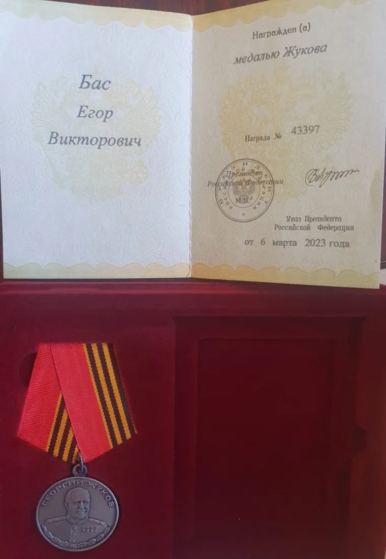 «Хорошие новости пришли сегодня с полей боевых действий. Нашего земляка, настоящего воина Егора Баса наградили медалью Жукова. Указ подписан Президентом России 6 марта», — написал Жилин на своей странице в соцсети «ВКонтакте».