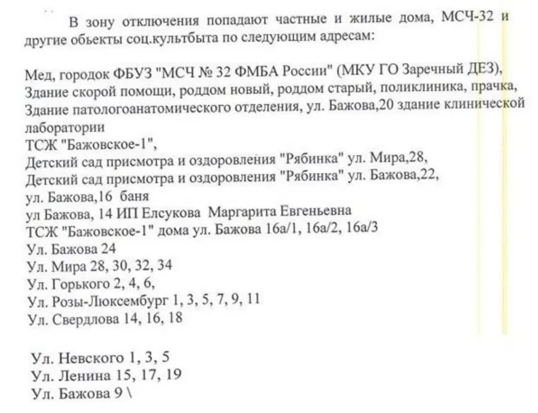 Под отключения попадают улицы Бажова, Мира, Горького, Свердлова и Невского. Также воды не будет в двух детских садах «Рябинка», здании скорой помощи, поликлинике, роддомах и других.