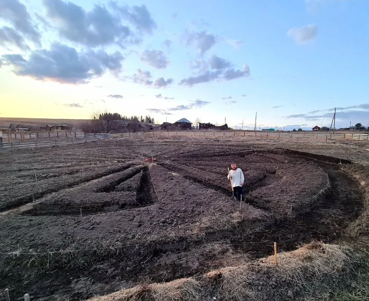 Житель расположенного в аномальной зоне села Молебка (Пермский край) Мишель Абдулов соорудил на своем огороде гигантский коловрат. Диаметр древнеславянского символа составил 27 метров. Мужчина рассказал URA.RU, что высаживает на нем различные лечебные и тонизирующие организм травы. Коловрат устроен таким образом, что притягивает к себе различные энергии, пояснил травник.