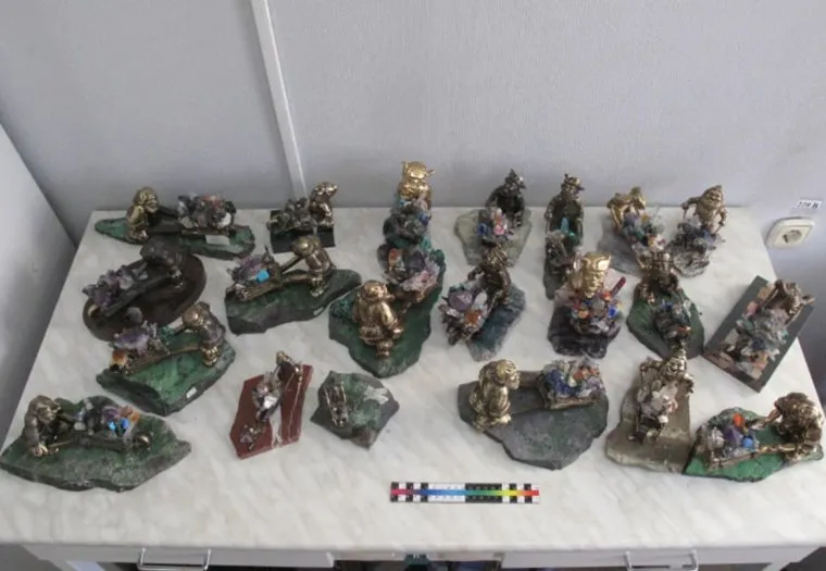 Сувениры мужчина купил в Екатеринбурге примерно за 200-250 тысяч рублей. О том, что их нужно было декларировать и платить пошлину, он не знал. Партию статуэток изъяли и отправили на экспертизу, которая показала — они сделаны из янтаря, яшмы, нефрита, малахита, агата, аметиста и змеевика. Их общая стоимость составляет более полутора миллиона рублей.