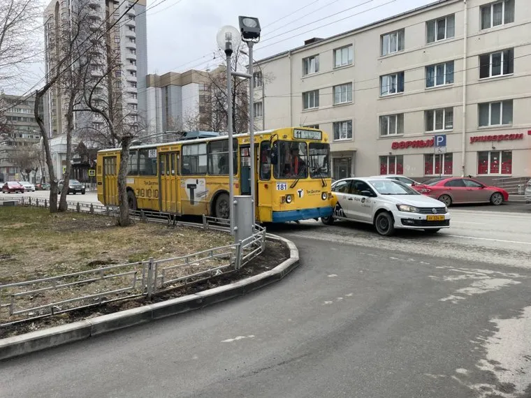 В Екатеринбурге на улице Белинского машина «Яндекс.Такси» врезалась в троллейбус. Об этом сообщил читатель URA.RU.