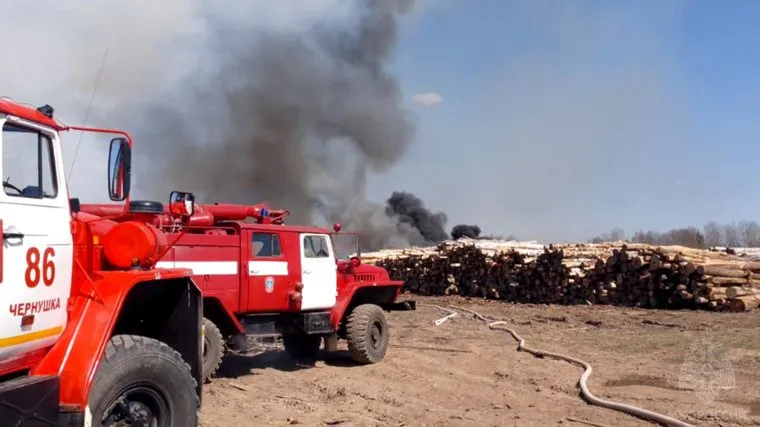 В Пермском крае вспыхнул склад лесозаготовителей. Фото