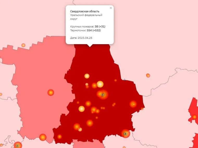 В Свердловской области зафиксировано самое большое количество пожаров за день среди всех российских регионов: 31 случай. Для сравнения — в Омской области зафиксировали 23 пожара, в Новосибирской — 25. Такие данные приводит сайт SCANEX, который занимается мониторингом природных пожаров.