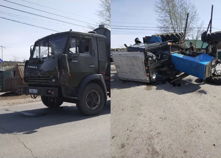 В Кургане водитель КамАЗа сбил трактор. Фото
