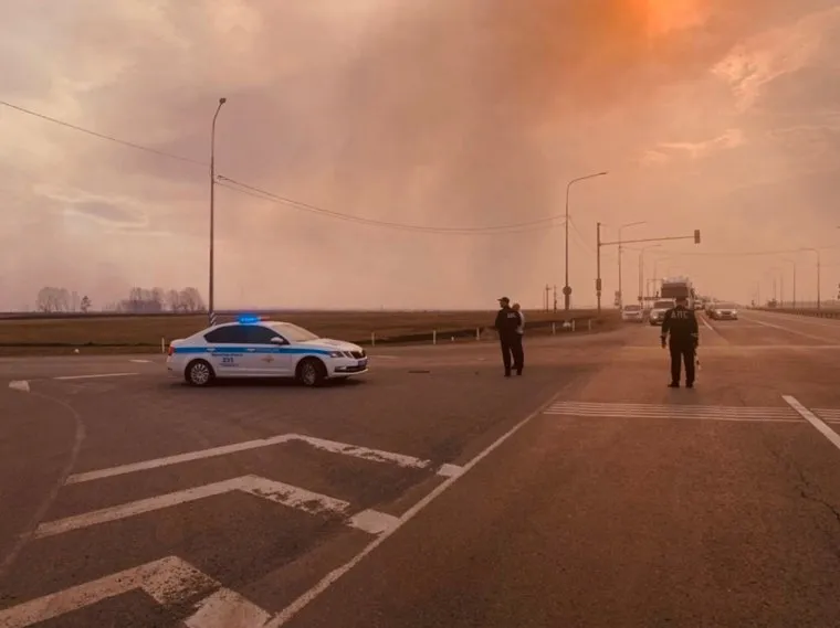 Сотрудники полиции контролируют автодорогу из-за пожаров в Кетовском округе