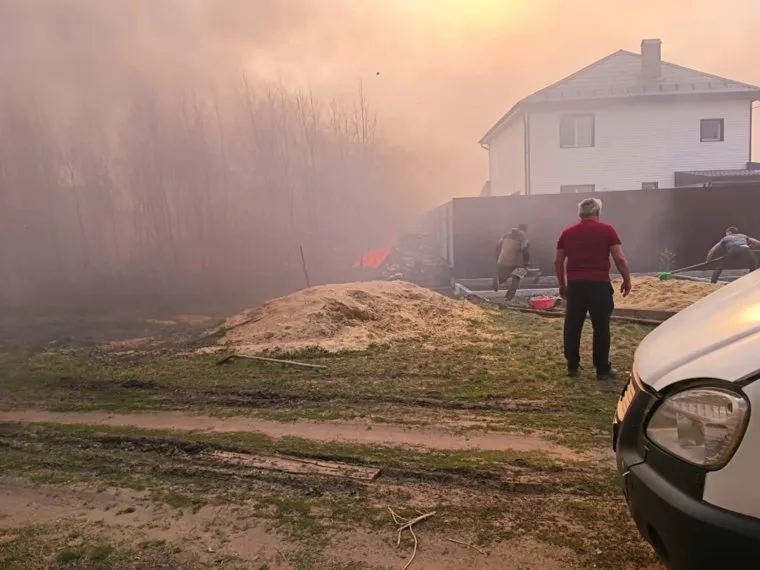 17:33 В деревне Логоушка горят улицы с жилыми домами. Слышны хлопки от взрыва газовых баллонов. Люди выкидывают их [баллоны] подальше от огня, передает корреспондент URA.RU.