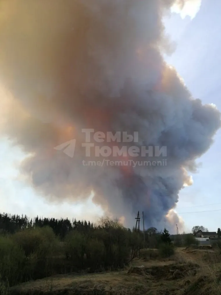 К селу Успенка в Тюменской области двигается новый пожар. Фото, видео