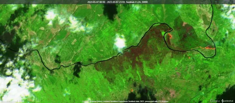 Национальный парк «Зигальга» в Челябинской области опубликовал фотографии со спутника, на которых виден масштаб лесного пожара, возникшего 4 мая. По данным пресс-службы учреждения, огонь уничтожил больше тысячи гектаров леса.