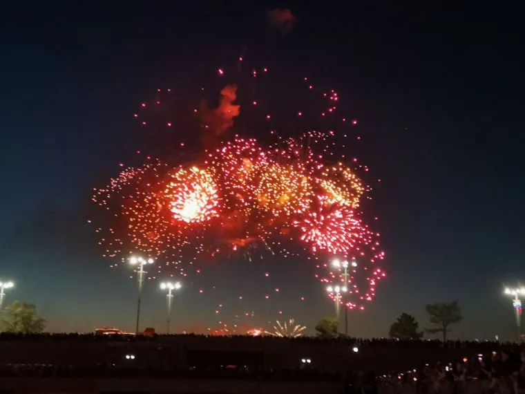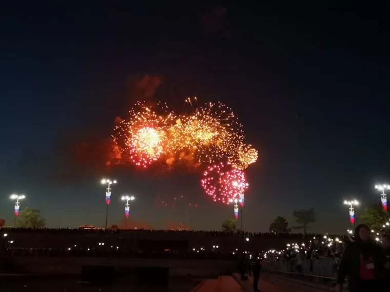 «Праздничный салют стартовал. Тысячи екатеринбуржцев, после гала-концерта на Плотинке идут к набережной реки Исеть, чтобы занять лучшие места для просмотра салюта», — передает корреспондент URA.RU с места событий.